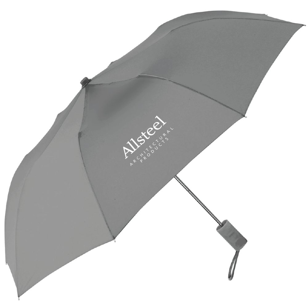 42" arc auto-open folding umbrella is made with RPET fabric constructed from recycled plastic bottles. The handle is also made of recycled plastics. Matching sleeve helps protect the umbrella when not in use.